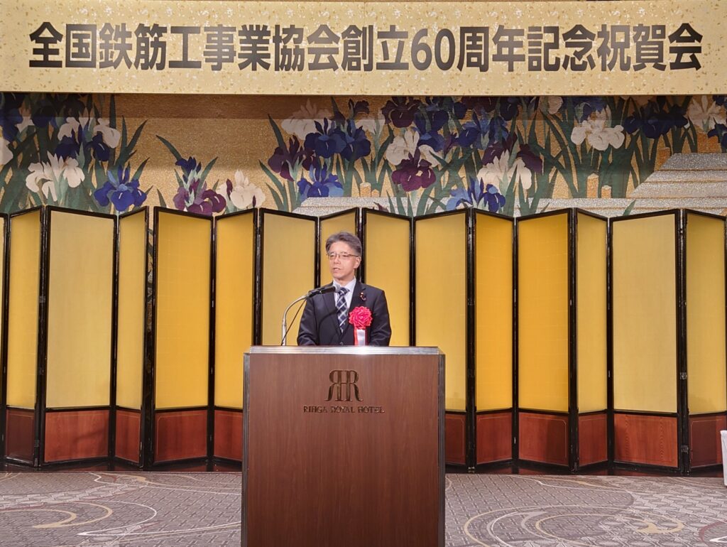 令和7年10月1日(水)、「公益社団法人 全国鉄筋工事業協会 創立60周年記念祝賀会」に出席しました。来賓としてご挨拶させていただき、その後、鉄筋工事業に携わっている皆様と懇談をさせて頂きました。