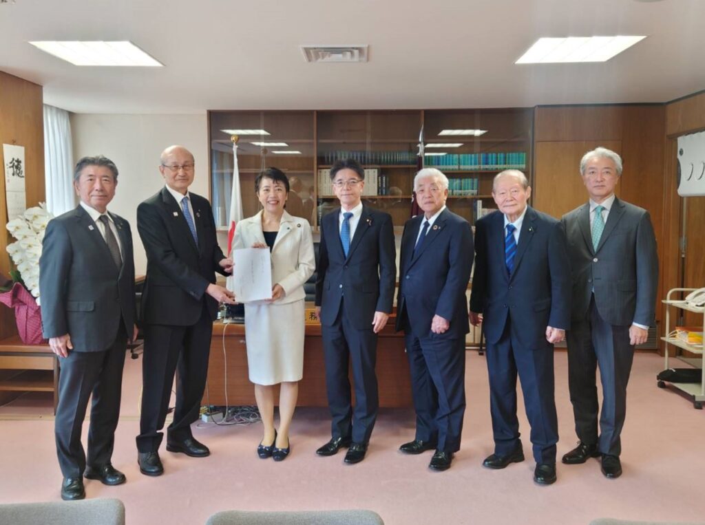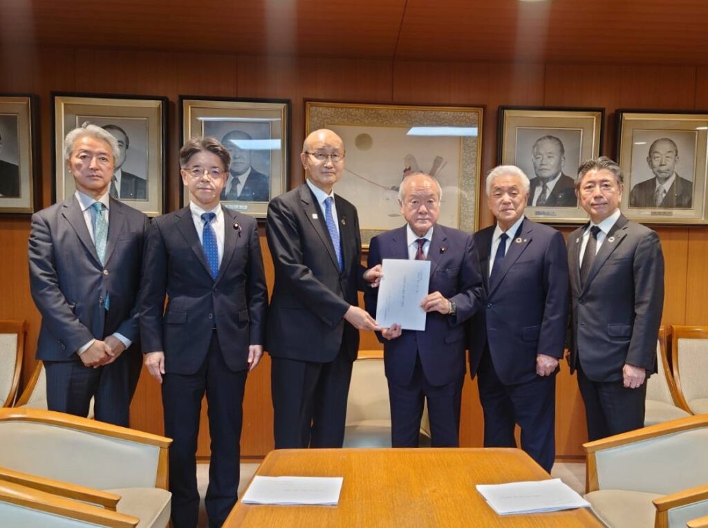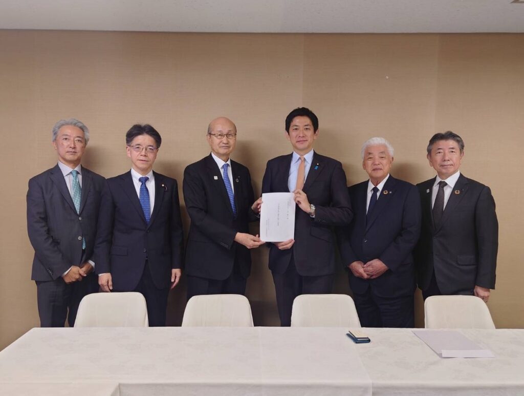 令和7年10月27日(月)、一般社団法人日本建設業連合会が、自由民主党の鈴木俊一 幹事長、有村治子 総務会長、小林鷹之 政務調査会長に対して、「公共事業予算の確保に関する要望」を行いました。