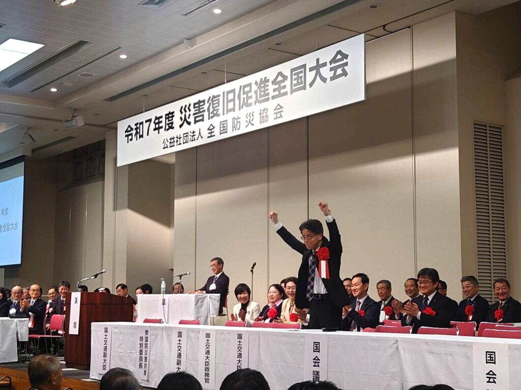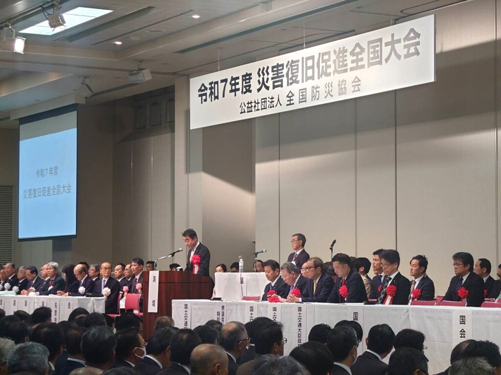 「令和7年度災害復旧促進全国大会」に出席しました 2025年11月11日 最終更新日時 : 2025年11月11日 ziusadmin 令和7年11月10日(月)、東京で開催された「令和7年度災害復旧促進全国大会」に出席しました。 今進めている災害復旧事業の加速化と、国土強靱化等の事前防災事業の推進のため、全力をつくしてまいります。