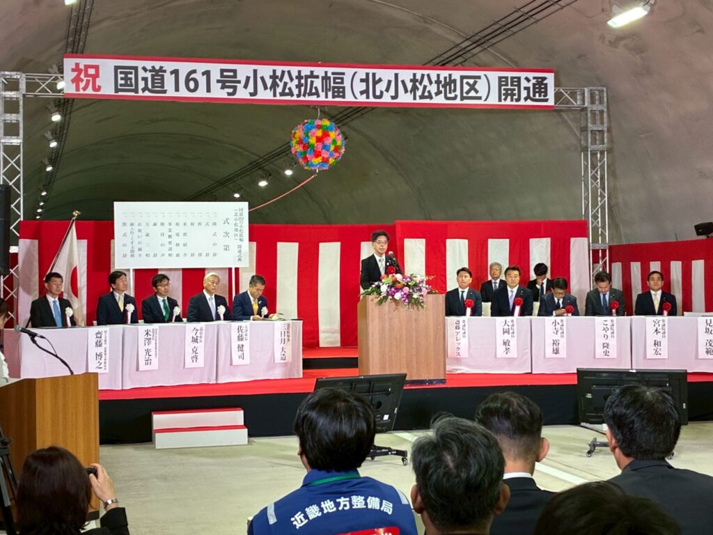 用地取得や工事に協力頂いた地元の皆さま、難工事に対応頂いた施工業者の皆さまには、改めて感謝申し上げます。国道161号の残る区間の早期完成に向けて、私も尽力してまいります。