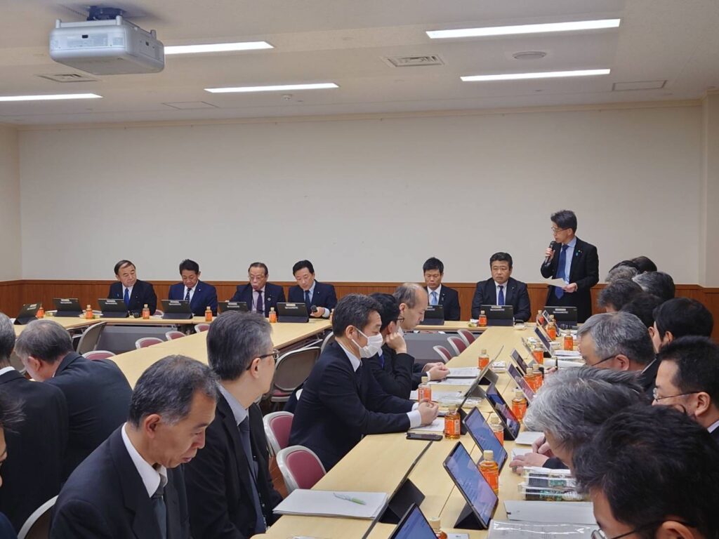 令和7年11月27日(木)、自由民主党「災害対策特別委員会」が開催され、今回は、佐藤 樹一郎 大分県知事と清水 久子 大分市副市長にお越しいただき、11月18日に発生致しました大分県佐賀関の大規模火災につきまして、要望聴取等を行いました。
