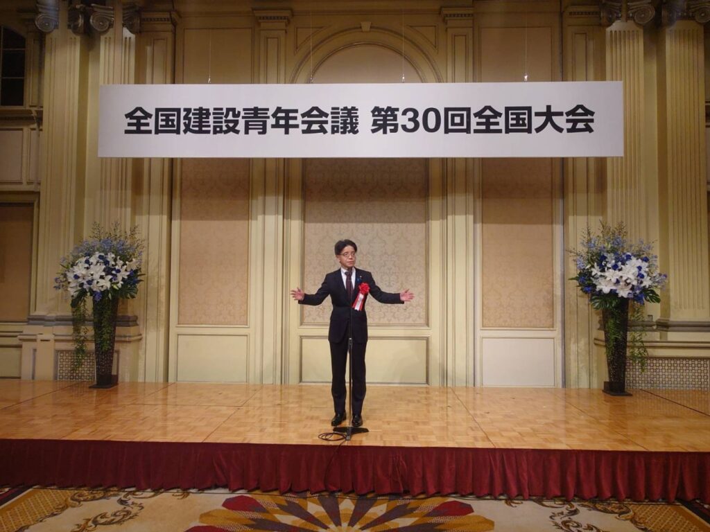 令和7年12月5日(金)、東京で開催された「全国建設青年会議 第30回全国大会」懇親会に出席し、来賓としてご挨拶させていただきました。その後、ご出席の約500名の皆様と懇談をさせて頂きました。