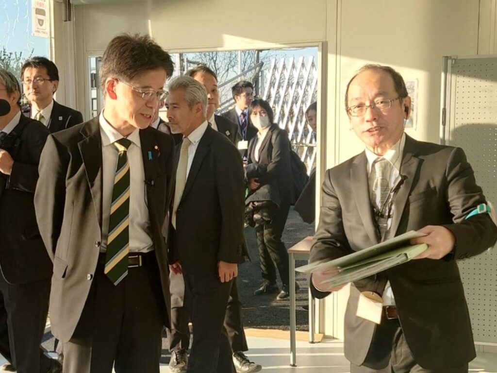 式典終了後、現場視察を行いました。このうち、施工業者の現場事務所は、現場で働く皆様の職場環境の改善のため様々な工夫がなされおり、女性を含め誰もが働きやすい環境になっていると実感をしました。このような現場事務所の職場環境改善が他の現場でも進むように、私も働きかけていきたいと思います。
