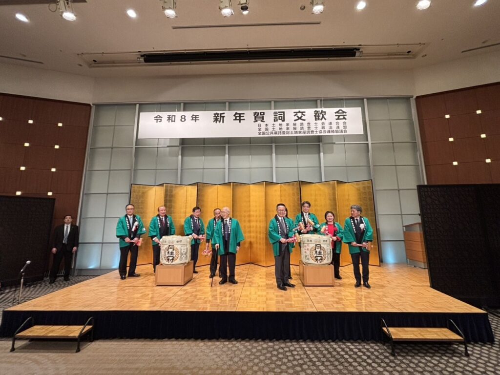 令和8年1月14日(水)、東京で開催された日本土地家屋調査士連合会・全国土地家屋調査士政治連盟・全国公共嘱託登記土地家屋調査士協会連絡協議会合同の「令和8年新年賀詞交歓会」にお招きいただき、来賓としてご挨拶・鏡開きに参加させていただきました。