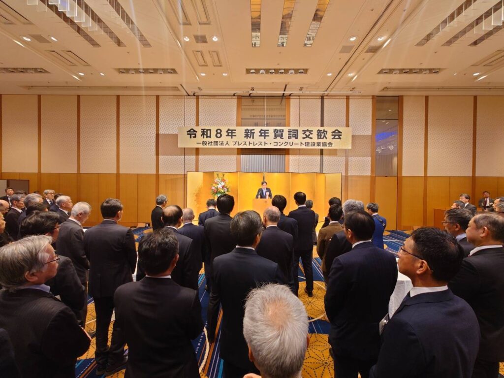 令和8年1月15日(木)、東京で開催されたプレストレスト・コンクリート(PC)建設業協会「令和8年新年賀詞交歓会」にお招きいただき、来賓としてご挨拶させていただきました。その後、出席の皆様と懇談をさせて頂きました。
