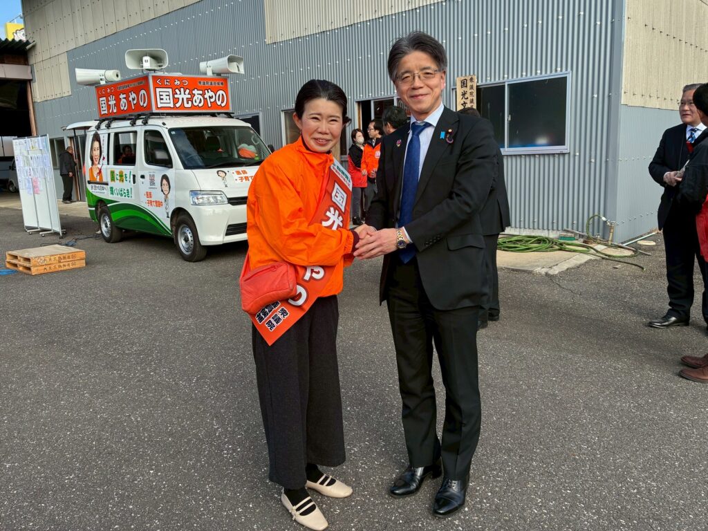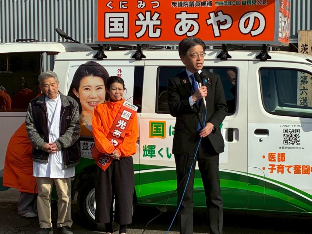 令和8年1月27日(火)、茨城県に移動し、つくば市内で開催された、国光あやの候補(茨城6区)の衆議院選挙に向けた出発式に参加し、激励の挨拶をさせて頂きました。国光候補には、平素より大変お世話になっており、何としても勝ち抜いて頂きたいと思います。応援にお越し頂いた茨城県建設業協会土浦支部の皆さま、つくばに研究施設のあるゼネコンの皆さま、お忙しい中、本当にありがとうございました。