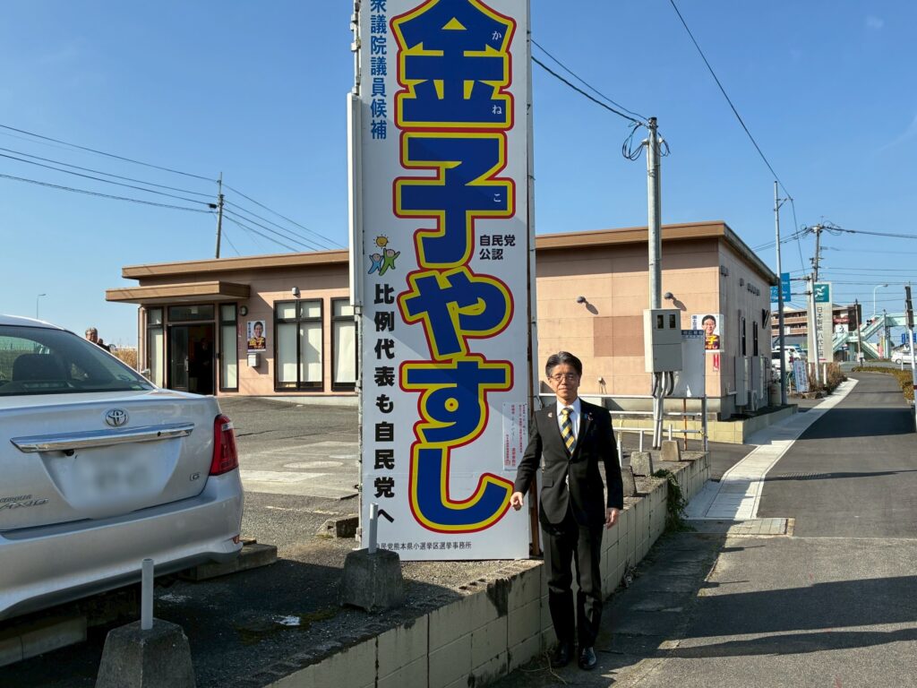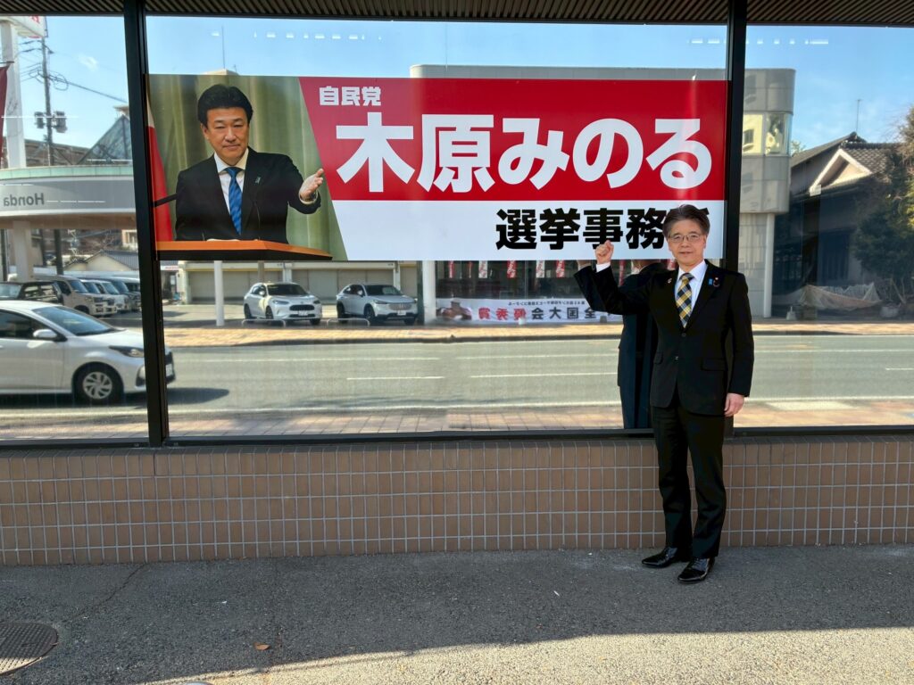 令和8年1月28日(水)、早朝の便で熊本空港に入り、自民党から立候補している木原稔候補(熊本県1区)、西野太亮候補(熊本県2区)、坂本哲志候補(熊本県3区)、金子恭之候補(熊本県4区)の選挙事務所をそれぞれ訪問し、激励を行いました。
