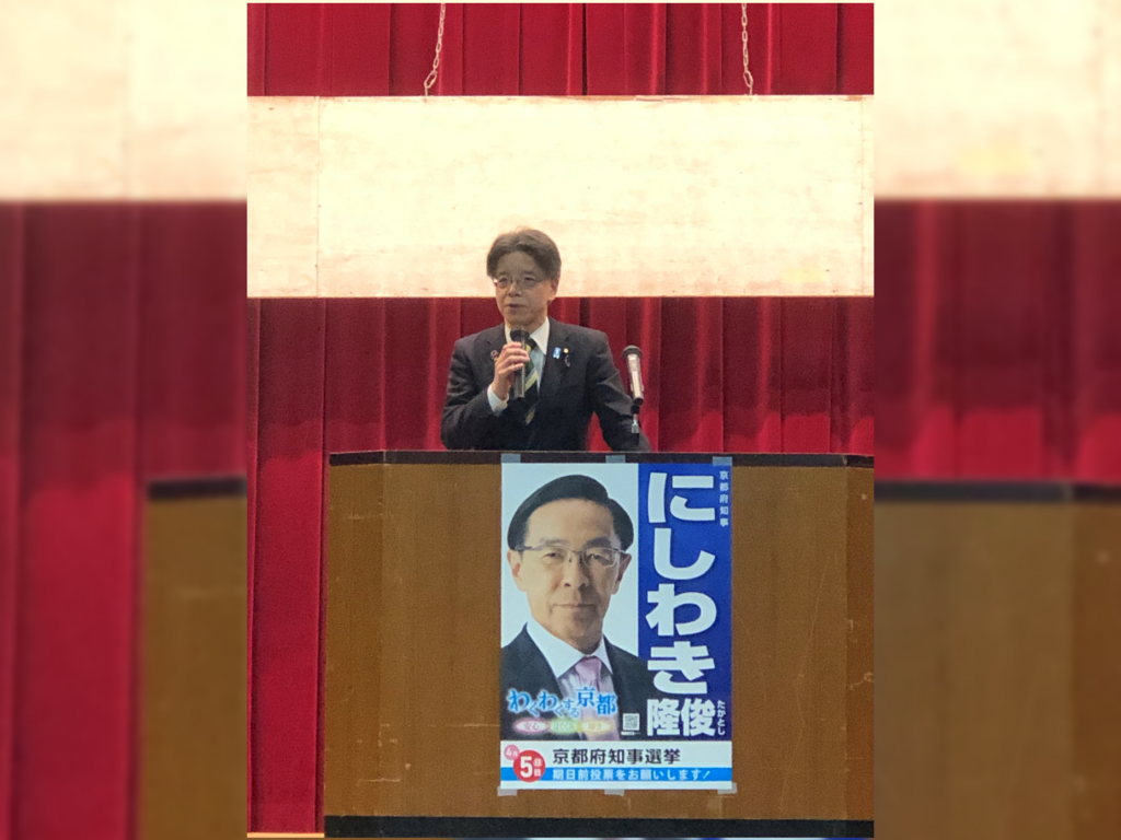 令和8年3月27日(金)の夜、京都府京田辺市で開催された京都府知事選挙候補者の西脇隆俊個人演説会に応援弁士として出席しました。